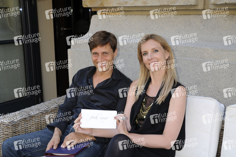 Jette Joop und Ehemann Christian Elsen relaxen in einem Restaurant während der Mercedes-Benz Fashion Week Berlin Spring/Summer 2011