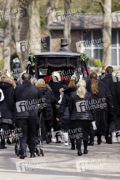 Die Stadt Leverkusen befürchtete eine größere Menschenansammlung bei der Beerdigung eines hochrangigen Clan-Mitglieds einer Großfamilie und damit Verstöße gegen die Corona-Schutzverordnung. Der Sarg wurde auf eine Kutsche geladen und in den Friedhof gefahren. Leverkusen, 09.04.2021