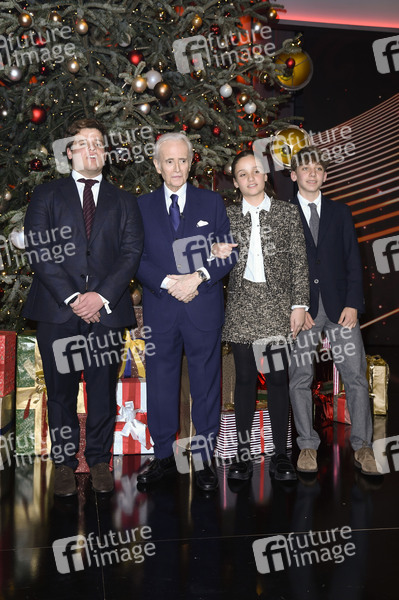 Jose Carreras mit seinen Enkelkindern Miquel Rocas, Adria Rocas und Joana Rocas bei der 30. José Carreras Gala 2024 in der Media City Leipzig. Leipzig, 12.12.2024