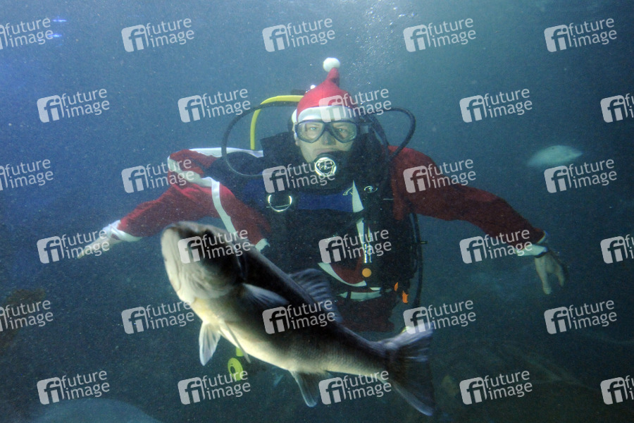 Der Weihnachtsmann bei den Haien, Unterwasserfütterung mit dem Weihnachtsmann im Aquadom & Sea Life, Berlin 09.12.2009