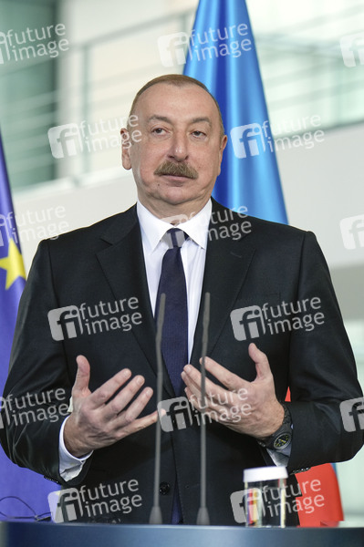 Ilham Alijew beim Empfang des Präsidenten von Aserbaidschan zu einem Gespräch mit dem Bundeskanzler mit anschließendem Pressestatement im Bundeskanzleramt. Berlin, 26.04.2024