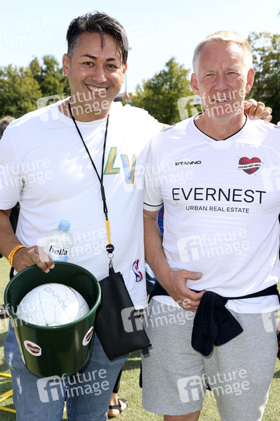 Karim Maataoui und Johannes B. Kerner beim Benefiz-Fußballspiel 'Kicken mit Herz' 2022 zu Gunsten des Herzzentrums des UKE im Stadium des SC Victoria. Hamburg, 04.09.2022