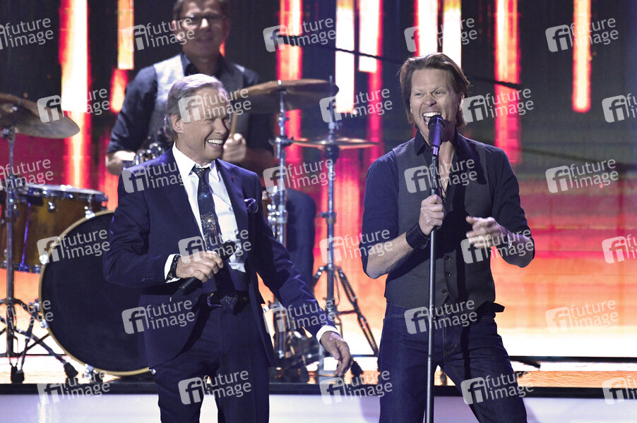 Peter Kraus mit Sohn Mike Kraus in der ZDF-Show 'Willkommen bei Carmen Nebel' im Velodrom. Berlin, 04.05.2019