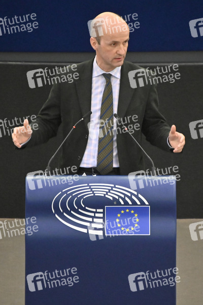 Nicolaus Fest bei einer Plenartagung zur Zusammenarbeit und Gemeinsamkeiten des Putin-Regimes und rechtsextremer sowie separatistischer Bewegungen in Europa im Plenarsaal des Europäischen Parlaments. Straßburg, 06.04.2022