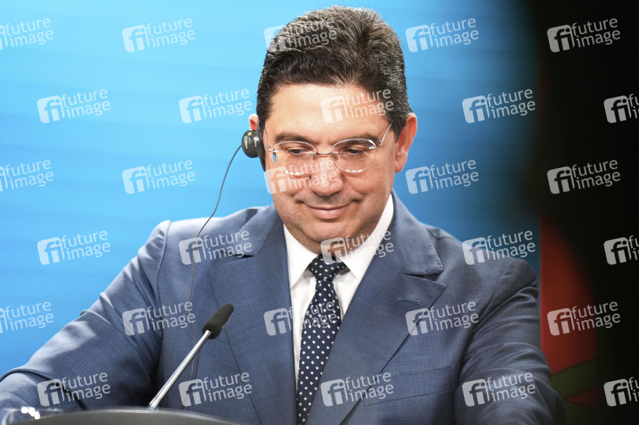 Dialog, Politik, Staatsbesuch, Pressekonferenz, Pressestatement, Staatsgast, Auswärtiges Amt, Außenminister, Politiker, Minister für auswärtige Angelegenheiten - afrikanische Zusammenarbeit und marokkanische Staatsangehörige im Ausland des Königreichs Marokko