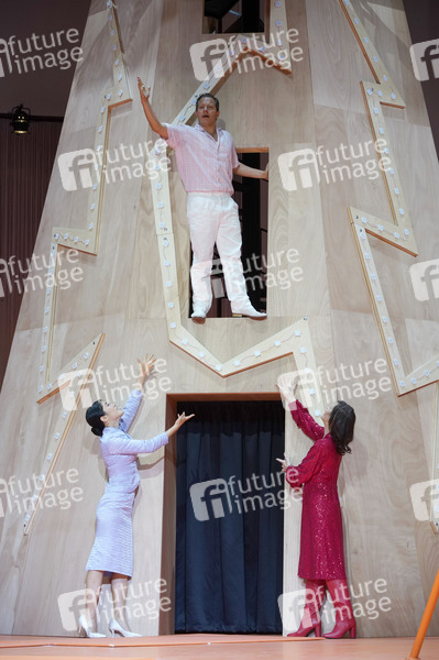 Kotbong Yang, Trystan Pütter und Sophie Rois bei der Fotoprobe zum Theaterstück 'Liebe, einfach außerirdisch' im Deutschen Theater. Berlin, 28.06.2022