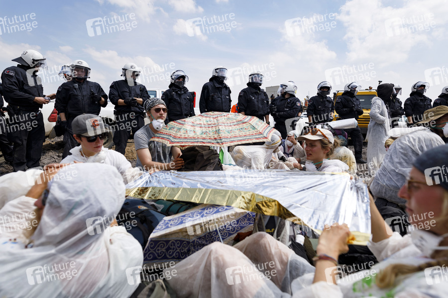 Erderwärmung, Klimagase, Kohlegegner, Klimaaktivisten, Klima-Notstand, Klimanotstand, Klimakrise, Klima-Krise, Energiewende, CO2, Treibhausgase, Klimaschutz, Schulstreiks für das Klima, Klima-Demonstration, Klima-Demo, Klimademo, Fridays for Future, Ende Gelände, Demonstration, Demonstranten, Demo, Kundgebung, Kohlekraft, RWE, Protest, Aktion, Banner, Parolen, Politik, Klimaschutz, Klimakrise, Klimawandel, CO2-Ausstoß, CO2-Steuer, Kohleausstieg, Fossile Brennstoffe, Klimapolitik, Hochneukirch, Keyenberg, Jüchen, Erkelenz, Grevenbroich, Tagebau, Garzweiler II, Braunkohlerevier, Climate Change, Jugendbewegung, Aktivismus, Climate Justice, Polizeikette, Polizei, Grubensturm, Demonstrationszug, Braunkohlegegner, Grubenrand, Aktivisten, Goldener Finger, Polizei, Polizeikräfte, Aktionsbündnis, Neurath, Kohle, Kohleversorgung, Braunkohle, Steinkohle, Symbolbild, Symbolfoto