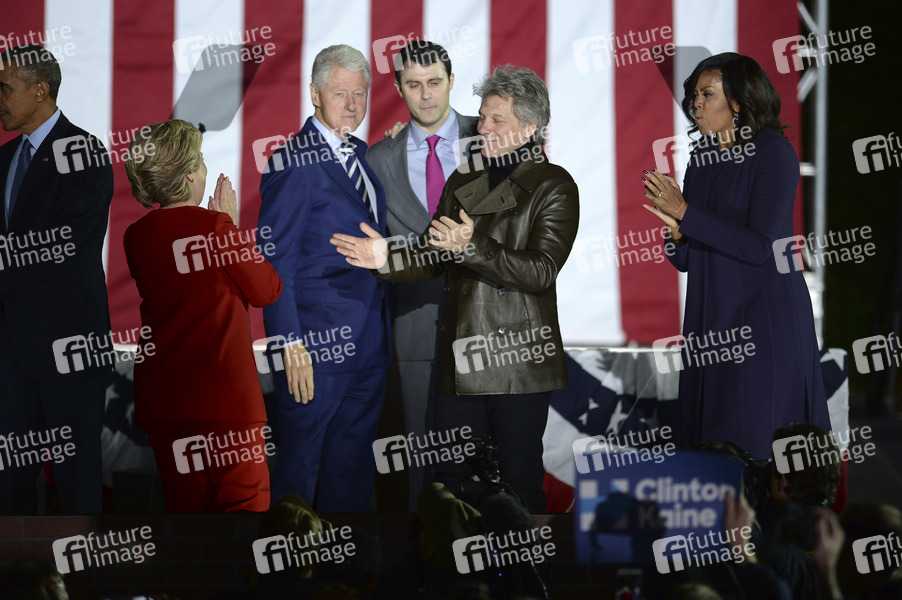 Barack Obama, Hillary Clinton, Bill Clinton, Marc Mezvinsky, Jon Bon Jovi und Michelle Obama bei einer 'Get out the Vote' Wahlkampfveranstaltung in der Independence Mall . Philadelphia, 07.11.2016