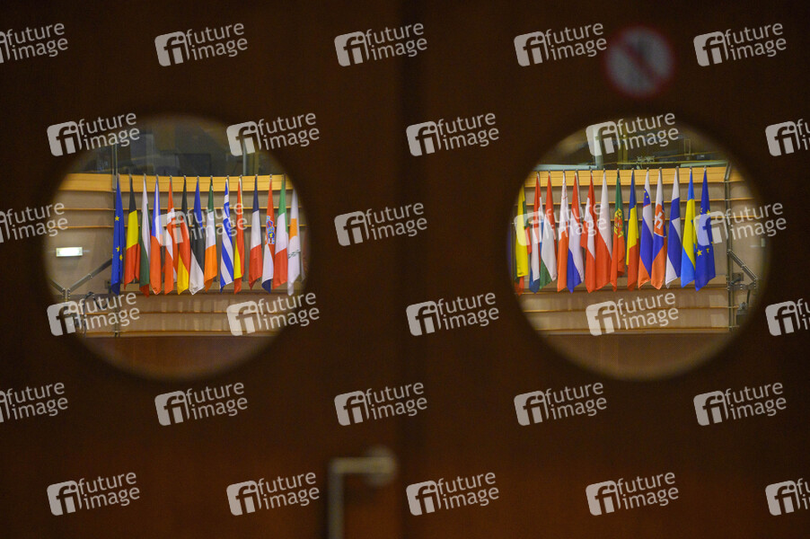 Flaggen der Mitgliedsländer beim Ausschuss für Binnenmarkt und Verbraucherschutz im Europäischen Parlament, Saal József Antall 4Q2. Brüssel, 27.10.2021