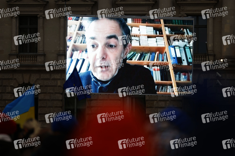 Der deutsch-iranische Schriftsteller Navid Kermani beim Solidaritätsaufruf 'Call for Solidarity with Ukraine' des Internationalen Literaturfestivals Berlin auf dem Bebelplatz. Berlin, 06.03.2022
