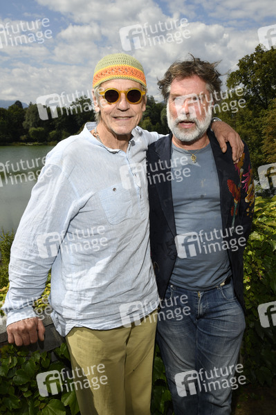 Jeremy Irons und Rufus Wainwright beim Pressegespräch zur amfAR Gala 2025 in der Bibliothek im Schloss Leopoldskron. Salzburg, 24.08.2025
