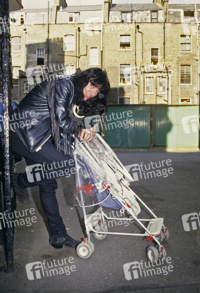 Rudi Protrudi von The Fuzztones bei einem Photoshooting. London, 27.05.1988