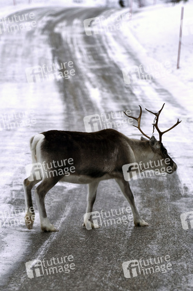 Sommarøy, Ren, Rentier, Renntier, Rangifer tarandus, Tier, Hirsch, Verkehrsgefährdung