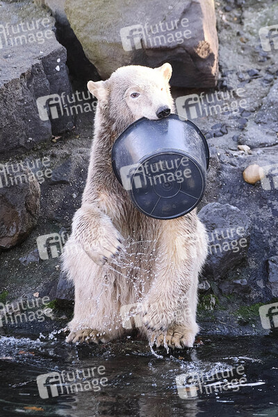 Eisbär bei der weihnachtlichen Beschäftigungs-Bescherung im Erlebnis-Zoo Hannover. Hannover, 21.12.2020