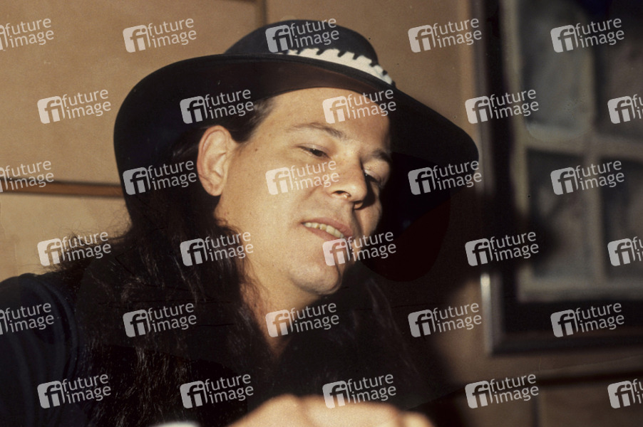 Bobby Dall von Poison bei einem Photoshooting in einem Hotel. London, 18.05.1991