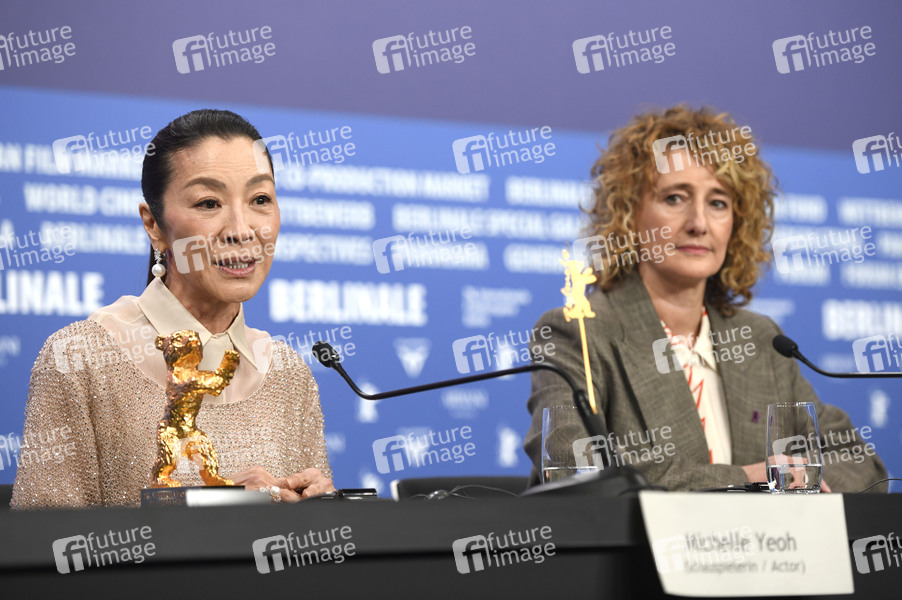 Michelle Yeoh und Tricia Tuttle bei der Pressekonferenz zur Verleihung des Goldenen Ehrenbären für das Lebenswerk auf der Berlinale 2026 / 76. Internationale Filmfestspiele Berlin im Hotel Grand Hyatt. Berlin, 13.02.2025
