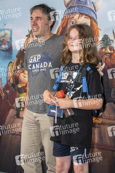 Josef Braun mit Sohn Frederic bei der Deutschlandpremiere des Animationsfilms 'Wickie und die starken Männer - Das magische Schwert / Vic the Viking and the Magic Sword' in der Astor Film Lounge im ARRI-Kino. München, 21.08.2021