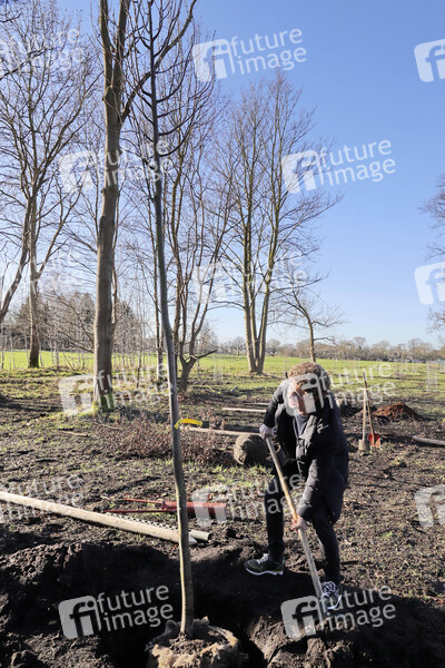 Atze Schröder pflanzt einen Baum im Fame Forrest der Barclaycard Arena. Hamburg, 05.02.2020