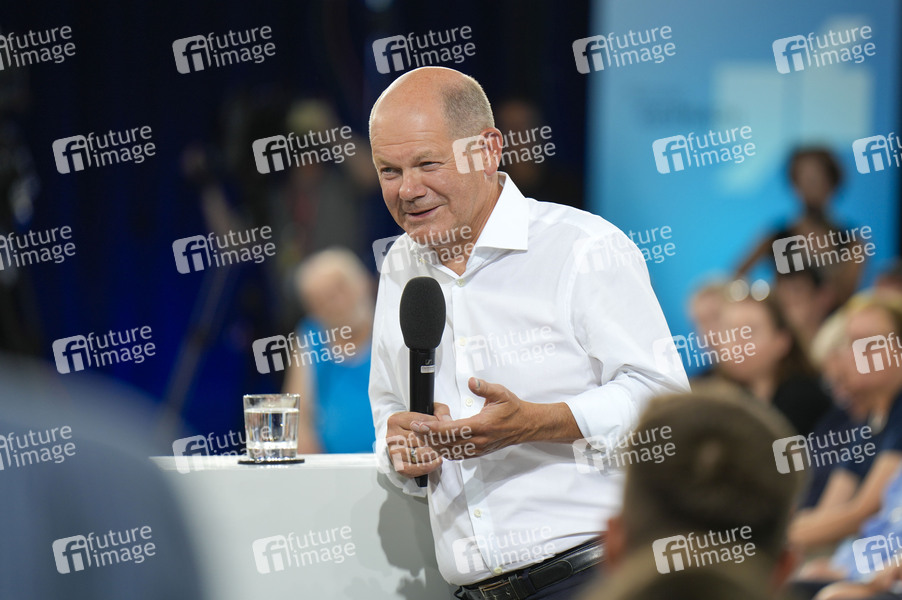 Olaf Scholz beim Kanzlergespräch mit Bürgern in der ufaFabrik. Berlin, 04.09.2024