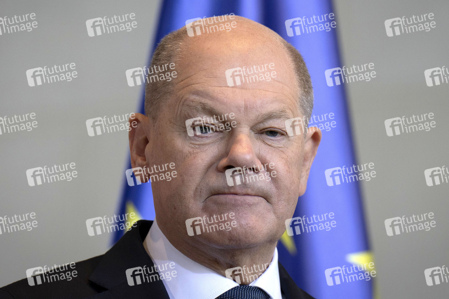 Olaf Scholz beim Empfang des Königs von Jordanien zu einem gemeinsamen Gespräch und anschließendem Pressestatement im Bundeskanzleramt. Berlin, 03.04.2025