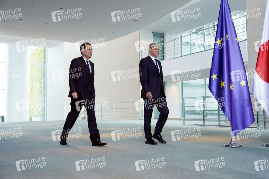Fumio Kishida und Olaf Scholz beim Empfang des Premierministers von Japan mit militärischen Ehren und zu einem gemeinsamen Gespräch mit anschließendem Pressestatement im Bundeskanzleramt. Berlin, 12.07.2024