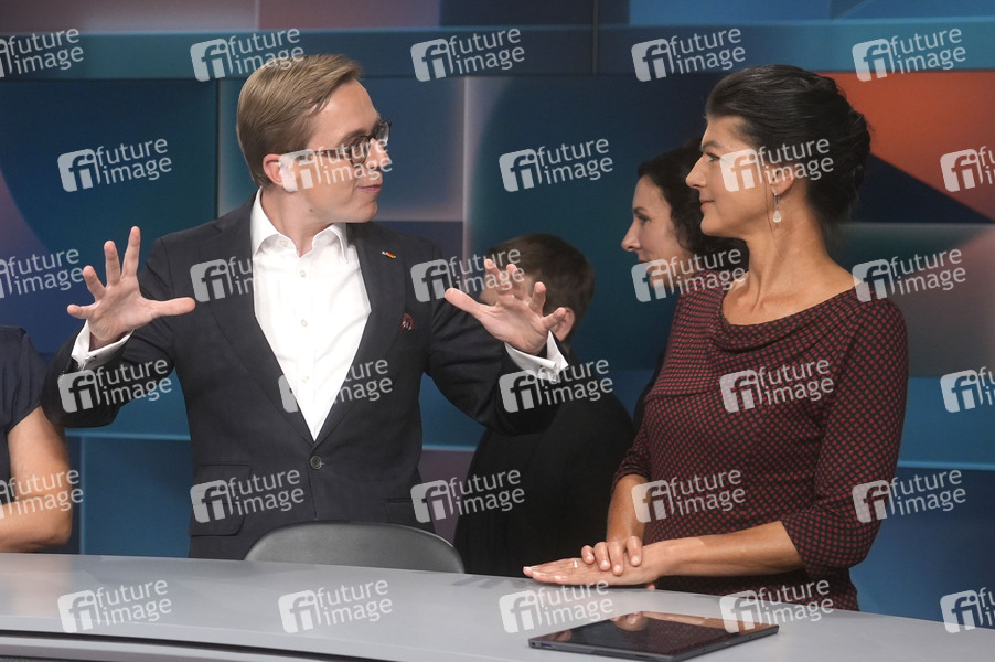 Philipp Amthor und Sahra Wagenknecht in der ARD-Talkshow 'hart aber fair' im Studio Adlershof. Berlin, 23.09.2024