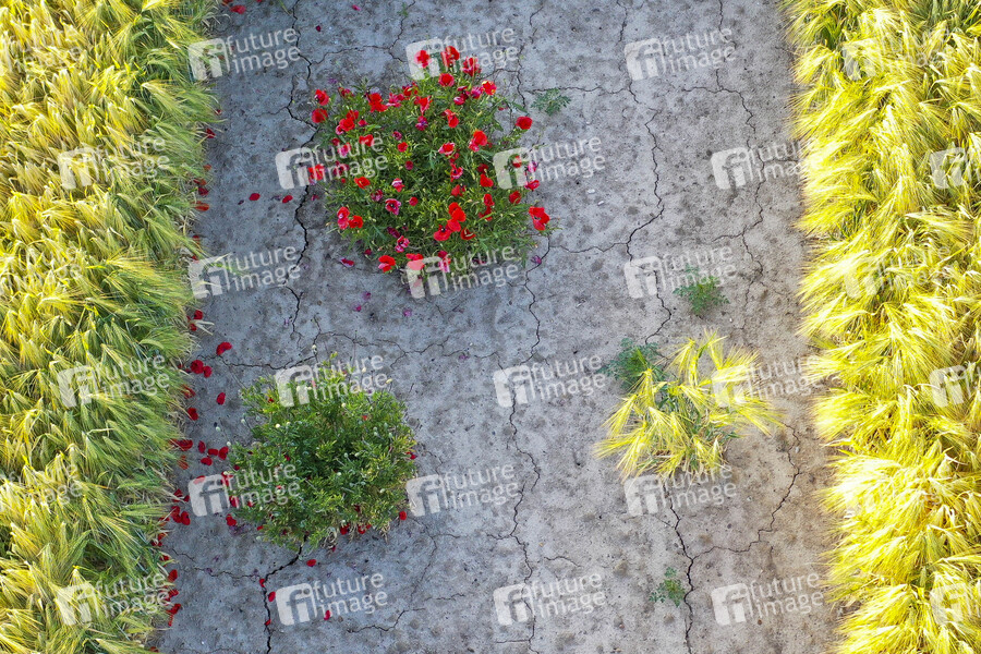 Durch Regen- und Wassermangel ausgetrockneterBoden für den Anbau von Weizen und Roggen. Landwirte in der Region kämpfen mit dem Klimawandel und Dürre. Köln, 08.06.,2020