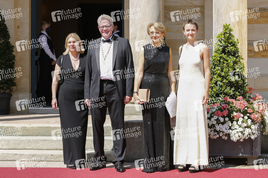 Stefanie Hellbach, Thomas Ebersberger und Anne-Marie Descotes mit Begleitung bei der Eröffnung der Richard-Wagner-Festspiele 2022 mit der Neuinszenierung von Richard Wagners 'Tristan und Isolde' im Bayreuther Festspielhaus. Bayreuth, 25.07.2022