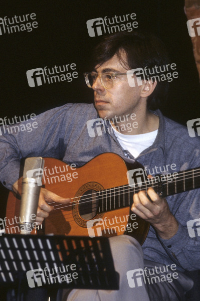 Simon Jeffes vom Penguin Cafe Orchestra beim Soundcheck im Mermaid Theatre. London, 16.12.1984