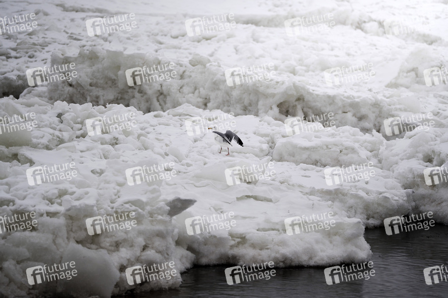 Wasserstraße, Gewässer, Eis, gefroren, zugefroren, Schneetreiben, Winter, gefrierende Nässe, Kälteeinbruch, Schneefall, Schnee, Schneegrenze, Schneematsch, Glätte, glatt, Frost, Wetter, Glättegefahr, Glatteis, Glatteisgefahr, Temperatursturz, Winterdienst, Streusalz, Schneeglätte, Deutscher Wetterdienst, winterlich, kalt, Schnee-Chaos, Themenfoto, Symbolbild, Themenbild, Symbolfoto
