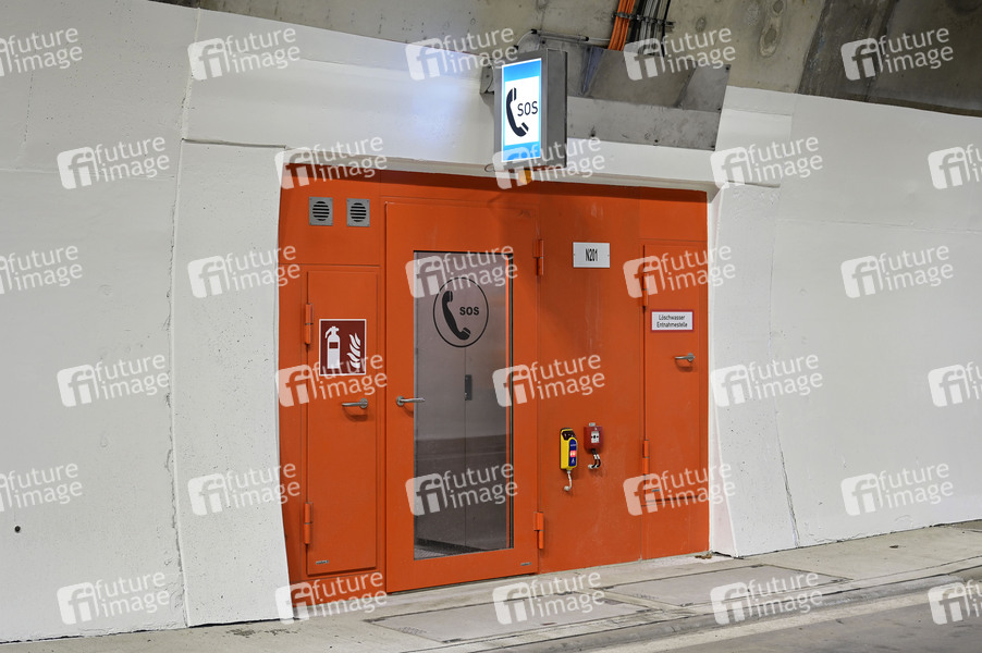 Pressetermin nach Abschluß der Sanierungsarbeiten in der Nordröhre (Bauröhre) und bevorstehenden Öffnung im Tunnel Königshainer Berge der Bundesautobahn 4,BAB 4 bei Görlitz. Der Tunnel Königshainer Berge ist mit 3281 m Länge einer der zehn längsten Straßentunnel in Deutschland. Er durchquert die namensgebenden Königshainer Berge. Kodersdorf, 28.02.2025