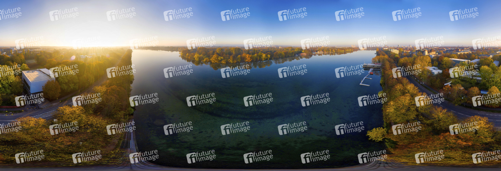 Panorama, See, Gewässer, künstlich angelegter 2.4 km langer und 180 bis 530 m breiter See südlich des Stadtzentrums von Hannover, 78 Hektar, Naherholungsgebiet, Wassersport