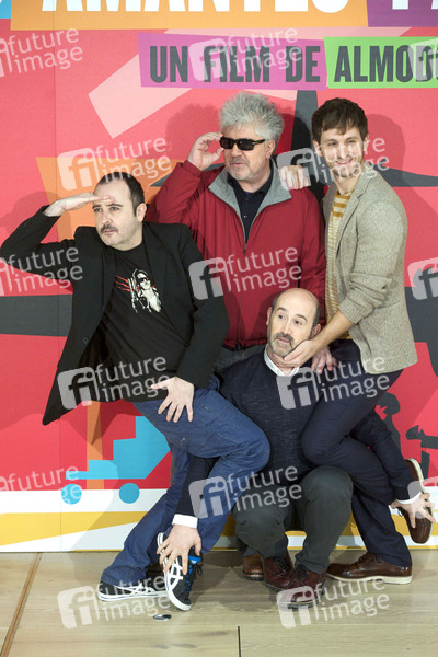 Carlos Areces, Pedro Almodovar, Javier Camara und Raul Arevalo beim Photocall zu 'Los amantes pasajeros' in der Espacio Fundacion Telefonica. Madrid, 06.03.2013