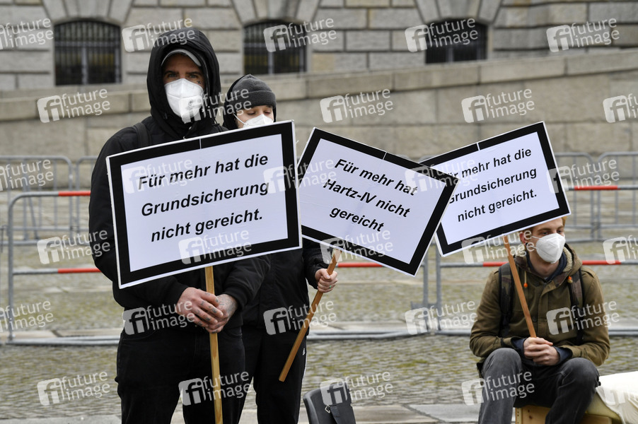 Unter dem Motto 'Keine halben Sachen: Corona-Hilfen für die Ärmsten!' demonstrieren Aktivisten der Kampagnen-Organisation Campact vor dem Reichstagsgebäude. Berlin, 26.02.2021