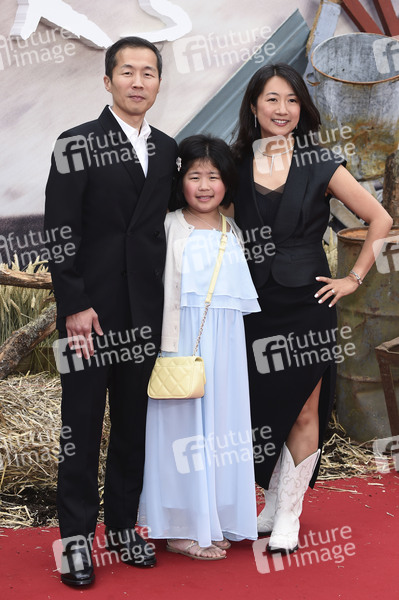 Lee Isaac Chung mit Ehefrau Valerie Chung und Tochter bei der Premiere des Kinofilms 'Twisters' im Cineworld Leicester Square. London, 08.07.2024