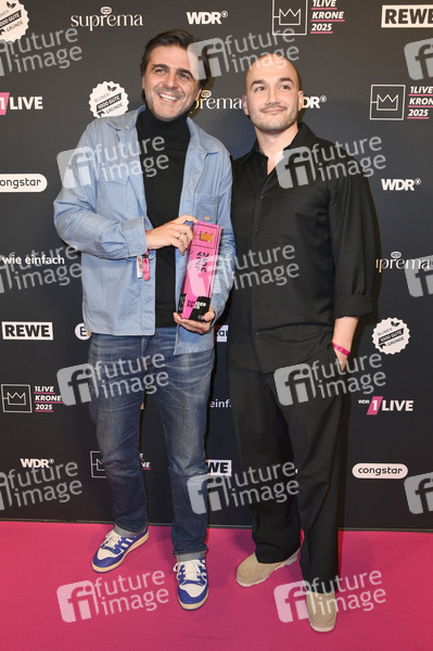 Juan Moreno und Sinan Sevinc bei der 26. Verleihung der 1Live Krone 2025 im Lokschuppen. Bielefeld, 04.12.2025