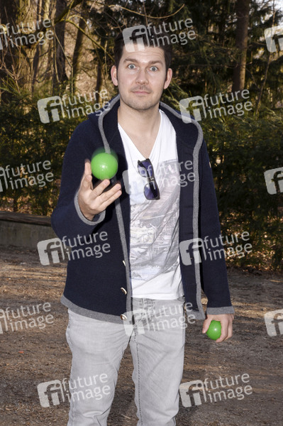 Max Kronseder (DeSchoWieda) beim Videodreh zum Lied 'Radlg'fahrn und G'schmissn' der Guten A-Band im Bavariapark und auf der Theresienwiese. München, 26.03.2021