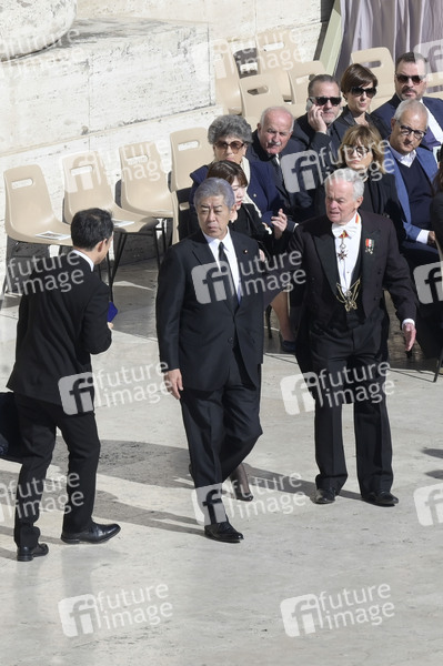 Takeshi Iwaya bei der Trauermesse für den verstorbenen Papst Franziskus auf dem Petersplatz. Vatikanstadt, 26.04.2025