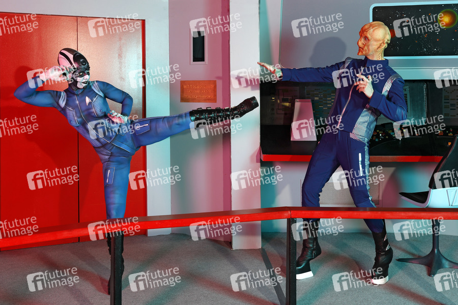 GEEK ART - Bodypainting meets SciFi, Fantasy and more: 'Star Trek Discovery' Photoshooting mit Model Barbara Wegener als Airiam und Enrico Lein als Saru auf der Brücke vom Raumschiff Enterprise im Filmwelt Center in Bad Münder - Ein Projekt des Fotografen Tschiponnique Skupin und des Bodypainters und Transformakers Enrico Lein