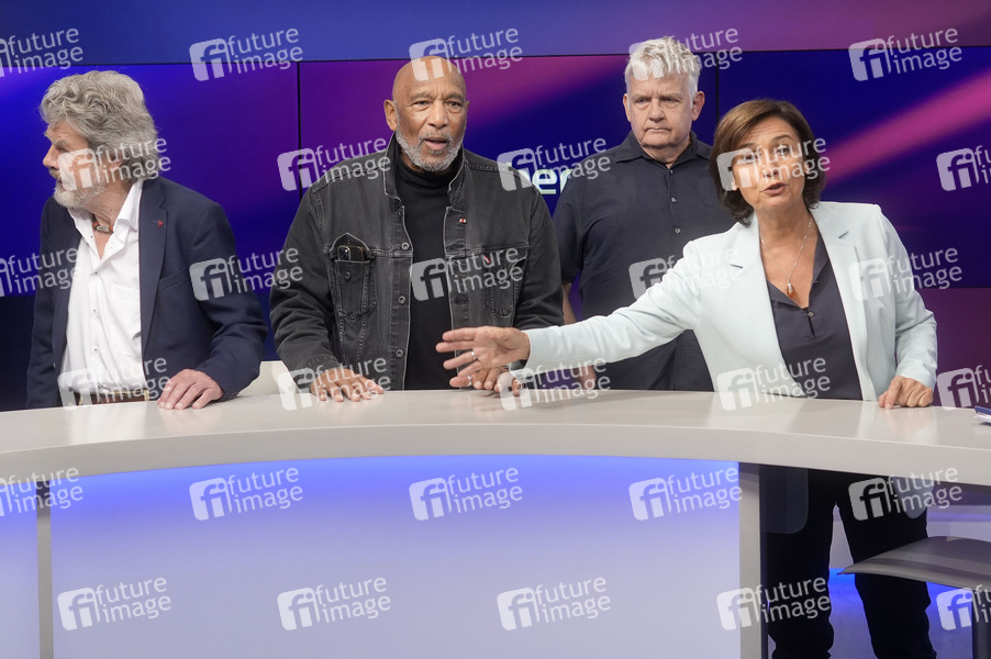 Ron Williams, Reinhold Messner, Eric T. Hansen und Sandra Maischberger in der ARD-Talkshow 'maischberger' im Studio Berlin Adlershof. Berlin, 11.09.2024