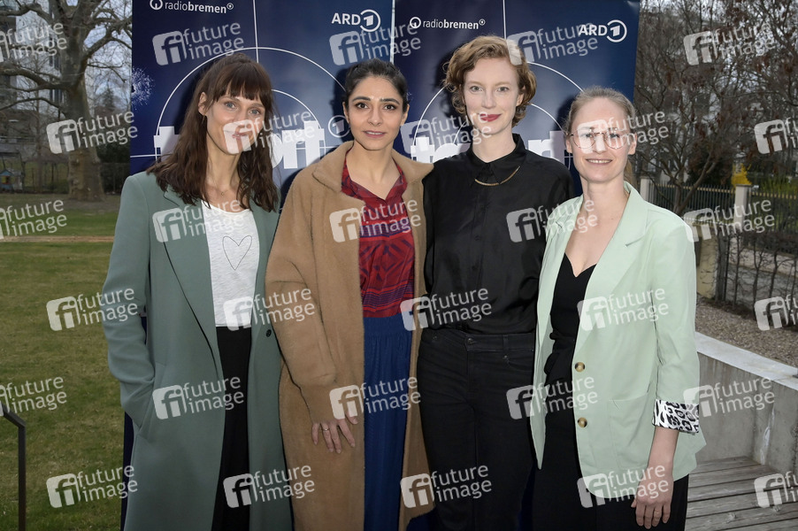 Sophie Lutz, Pegah Ferydoni, Luise Wolfram und Inez Björg David bei der Preview des ARD-Krimis 'Tatort - Angst im Dunkeln' in der Vertretung des Landes Bremen beim Bund. Berlin, 11.03.2024