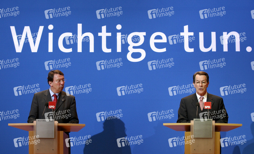 Klaus Uwe Benneter, deutscher Politiker (SPD), SPD-Generalsekretär und Franz Müntefering, deutscher Politiker (SPD), Bundesparteivorsitzender