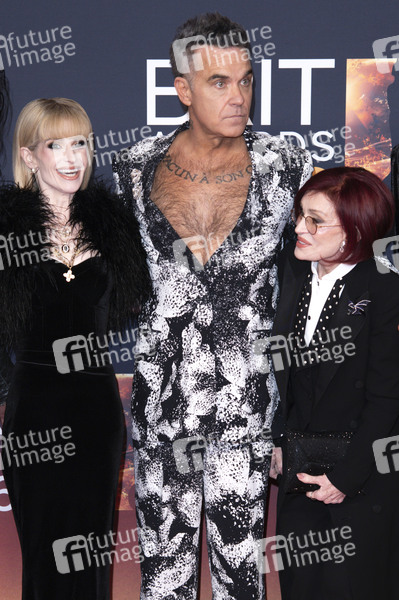 Kelly Osbourne, Robbie Williams und Sharon Osbourne bei der Verleihung der 46. BRIT Awards 2026 in der Co-op-Arena. Manchester, 28.02.2026