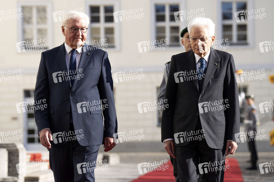 Frank-Walter Steinmeier und Sergio Mattarella beim Empfang des italienischen Staatspräsidenten mit militärischen Ehren im Schloss Bellevue. Berlin, 27.09.2024