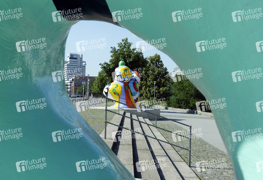 Kunstwerk von Niki de Saint Phalle von 1974, Frauenfiguren mit überdimensionierten Geschlechtsteilen