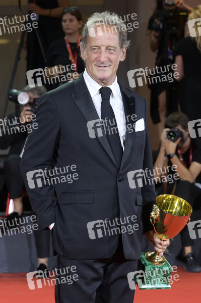 Vincent Lindon mit dem Coppa Volpi für den besten Darsteller in 'Jouer avec le feu' bei der Preisverleihung der Biennale di Venezia 2024 / 81. Internationale Filmfestspiele von Venedig im Palazzo del Cinema. Venedig, 07.09.2024