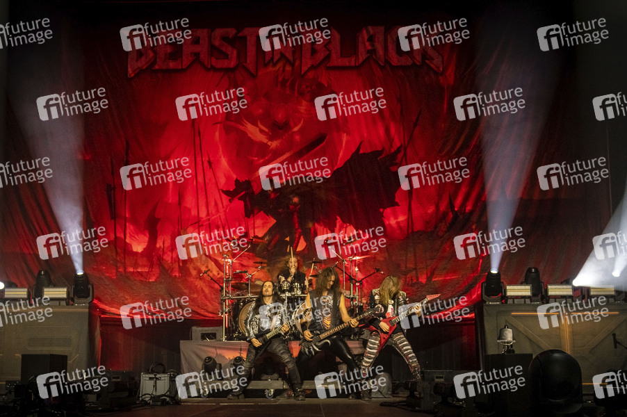 Mate Molnar, Atte Palokangas, Daniel Freyberg und Anton Kabanen von Beast in Black live bei einem Konzert in der Barclays Arena. Hamburg, 01.11.2025