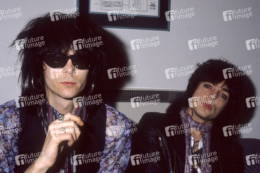 Danny Nordhal und Roger Ericson von The Throbs bei einem Photoshooting in einem Hotel. London, 05.04.1991