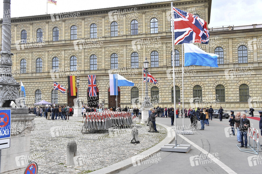 Vorberteitungen zur Begrüßung der britischen Royals auf dem Max-Joseph-Platz vor der Residenz München. München, 09.05.2019