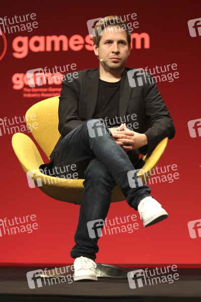 Kevin Kühnert auf der Gamescom 2022 auf dem Gelände der Kölnmesse. Die Gamescom ist die weltweit größte Messe für Computer- und Videospiele, gemessen nach Ausstellungsfläche und Besucheranzahl. Zahlreiche Hersteller aus aller Welt präsentieren hier ihre neue Soft- und Hardware. Köln, 25.08.2022